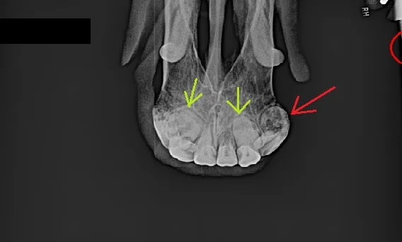 If your horse has any symptoms of EOTRH, have your veterinarian evaluate him for this condition! Radiographs (x-rays) will show changes, even early on in the disease. The sooner we are able to intervene in cases of EOTRH, the sooner the horse is out of pain!