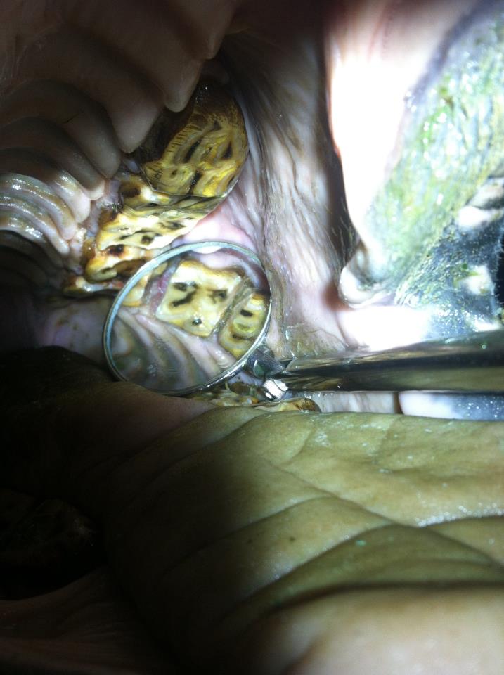 Our examinations are an interactive experience when a client is interested. We are always happy to show you the inside of your horse's mouth, let you observe abnormalities with the mirror and endoscope, and feel sharp overgrowths. Any abnormality is discussed and a plan is finalized with you before we do any dental corrections.